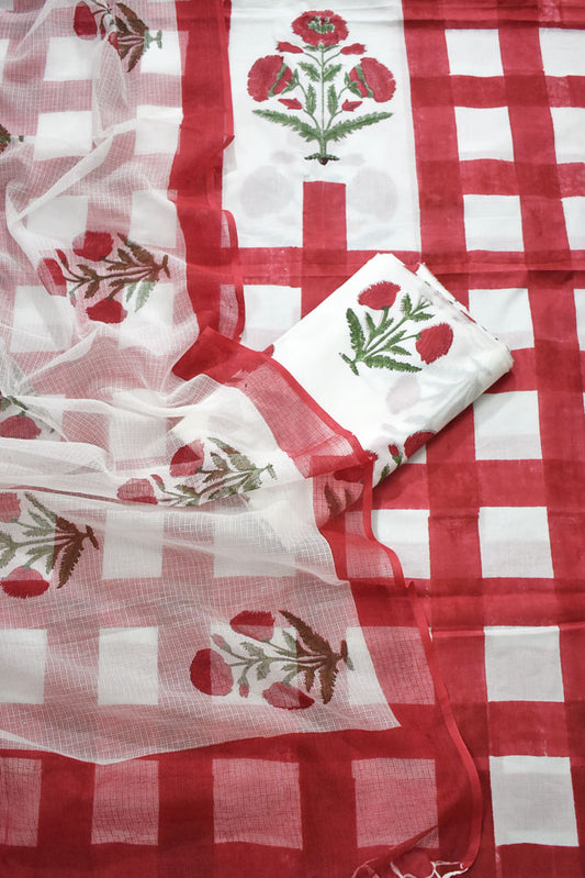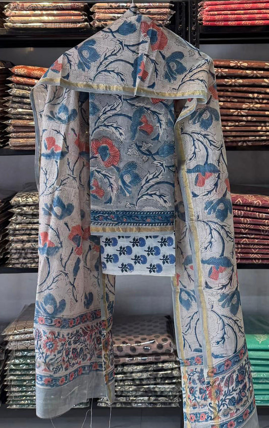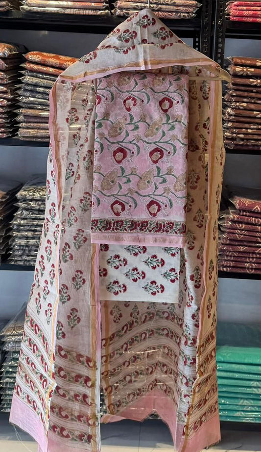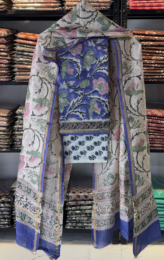 Elegant Hand Block Printed Chanderi Cotton unstitched suit fabric