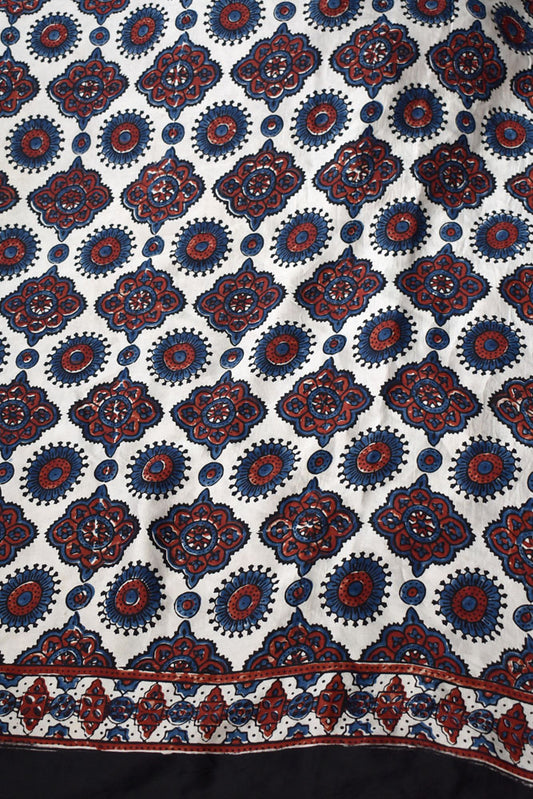 Earthy & Subtle Hand Block Printed Vanaspati Ajrakh Modal Silk Saree with blouse