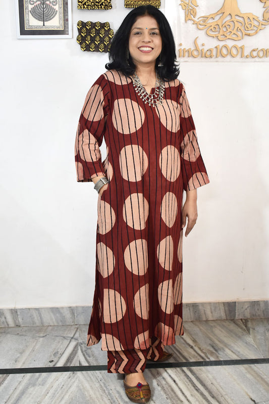 Elegant Ajrakh Organic Cotton Kurta and pant set - Sizes 38 - 44