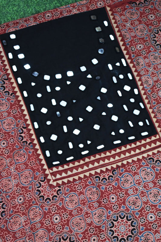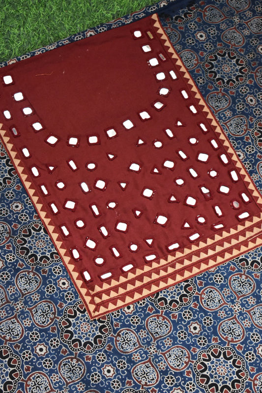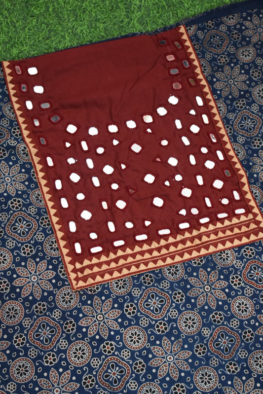 Designer Ajrakh Cotton Kurta Fabric with Kutch Mirror Work patch