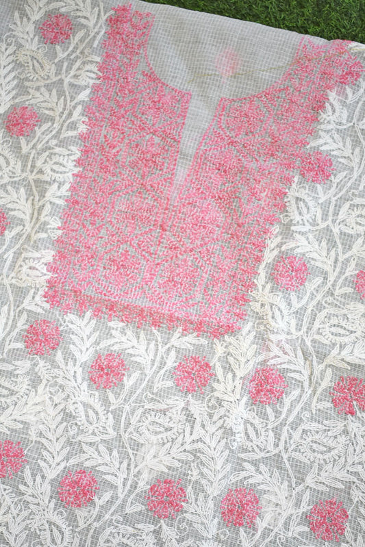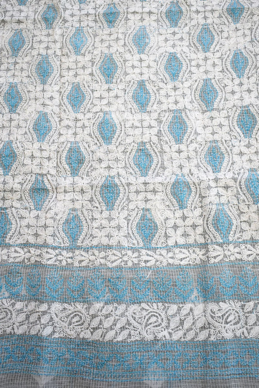 Designer Hand Embroidered Chikankari Tepchi work Kota Doria fabric