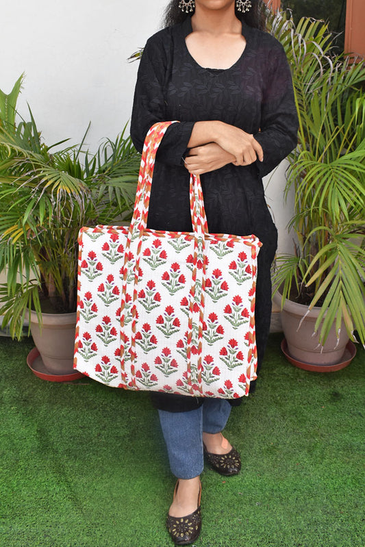 HANDCRAFTED SANGANERI QUILTED COTTON TOTE BAG