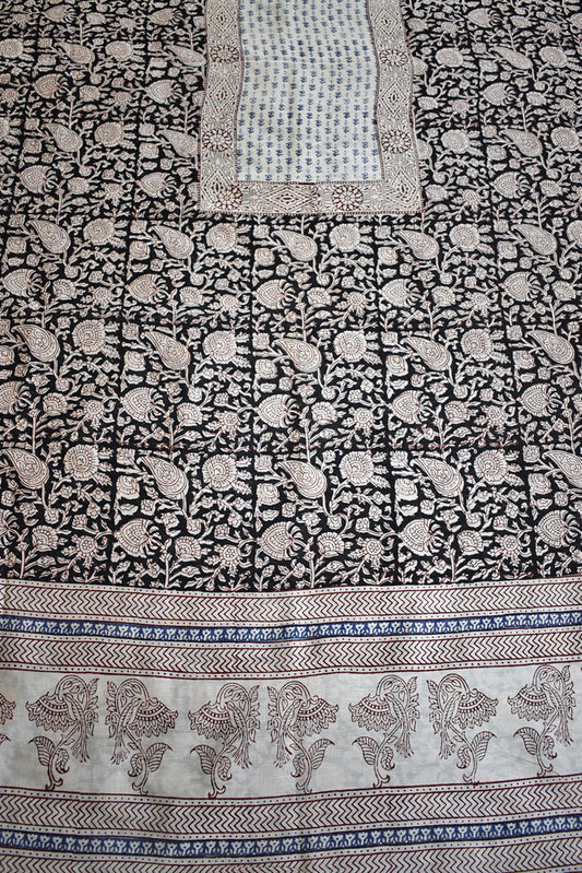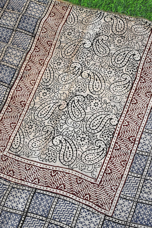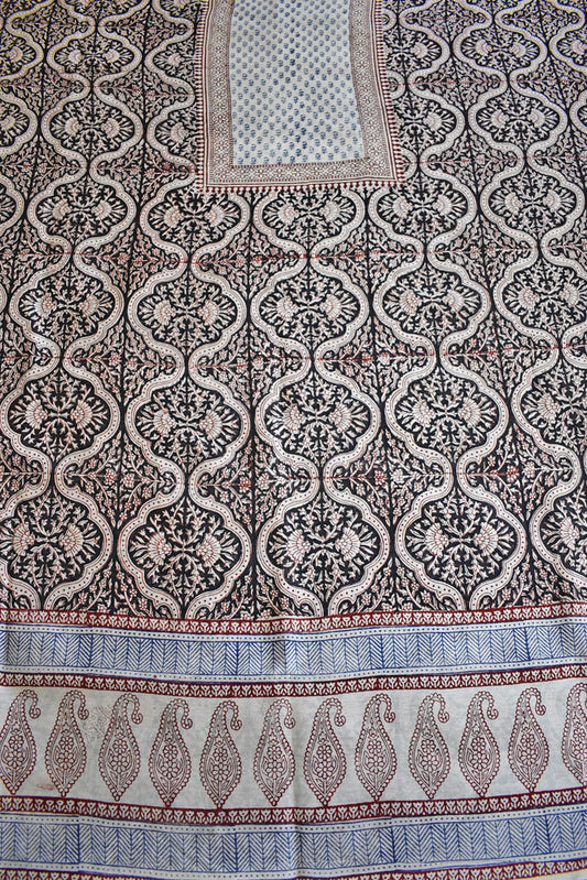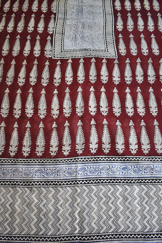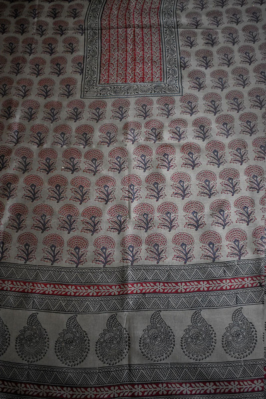 Handwoven Maheshwari kurta fabric with Bagh Hand block print