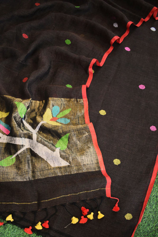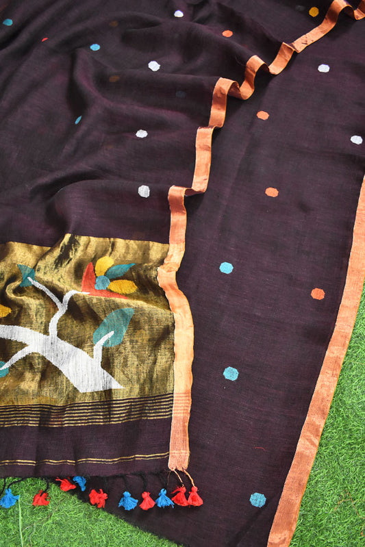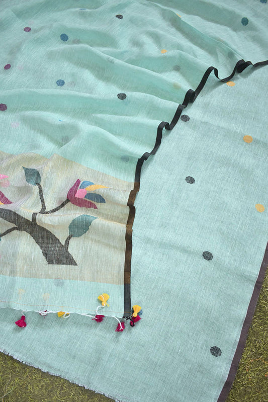 Kalakriti : Beautiful Hand Woven Pure Linen Jamdani Kurta Fabric & Dupatta set with Paithani inspired palla