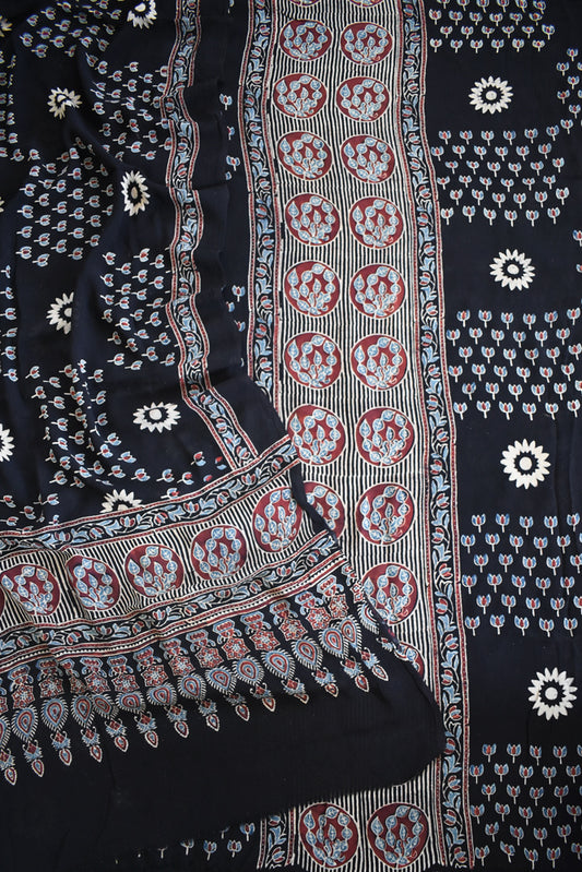Ajrakh Hand Block Print Georgette Dupatta & Georgette Kurta Fabric