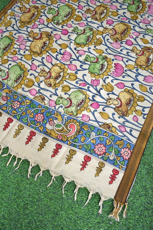 Beautiful Bangalore Cotton Silk Hand Painted Kalamkari Dupatta