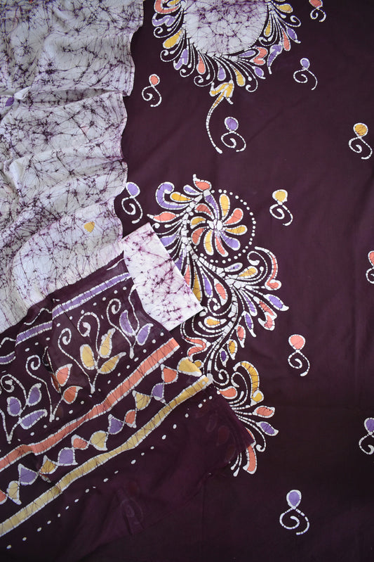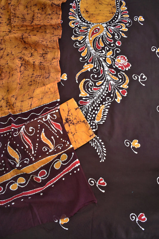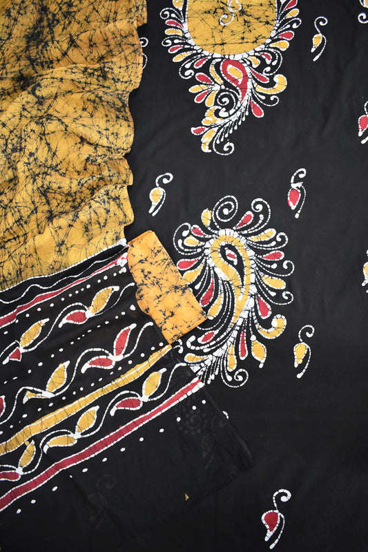 Beautiful Block Printed Cotton unstitched suit fabric with Chiffon dupatta