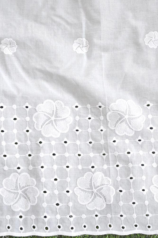 Beautiful cotton ( bottom) fabric with schiffli work & embroidery - 2.5 mtrs - color White - dyeable