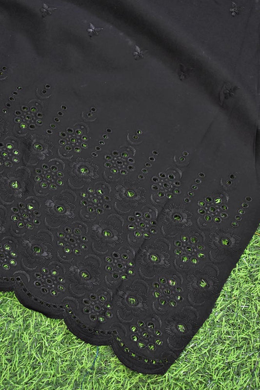 Beautiful cotton ( bottom) fabric with schiffli work & embroidery - 2.5 mtrs - color Black - dyeable