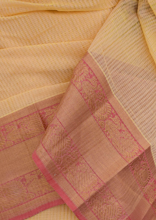 Beautiful Handwoven Missing weave Mangalgiri Cotton Saree with Zari border