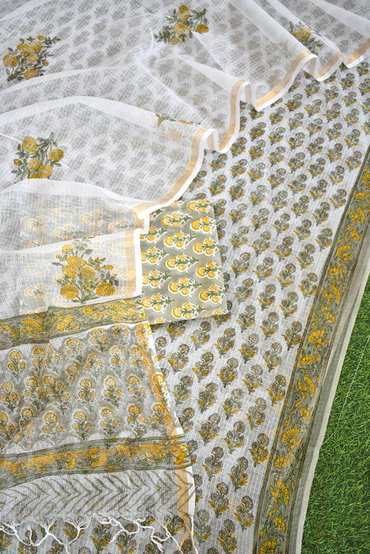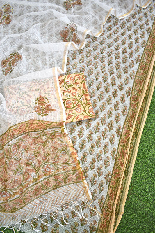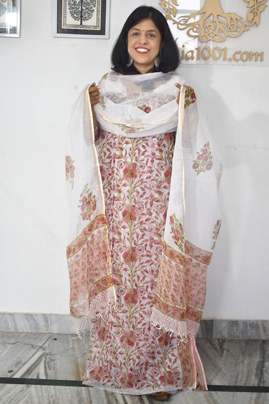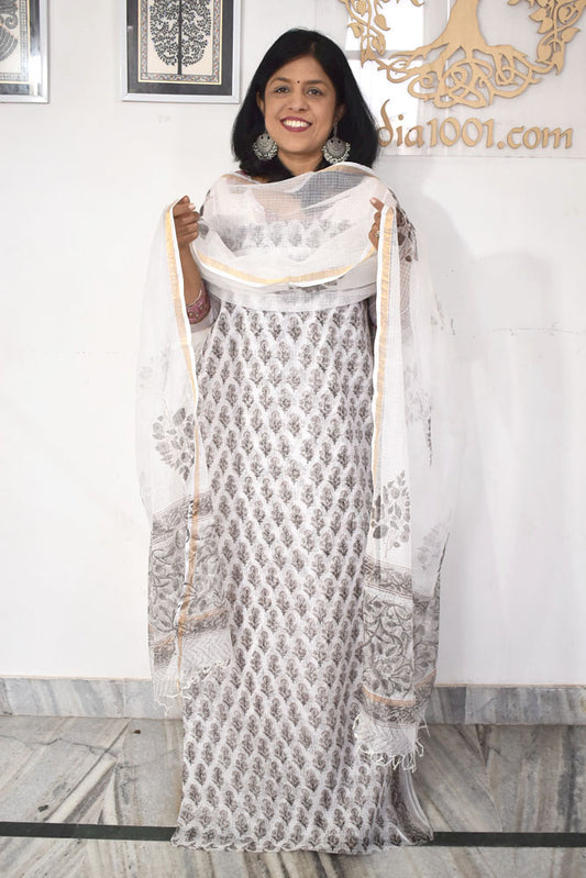 Beautiful Kota Doria cotton suit with Bagru Block print