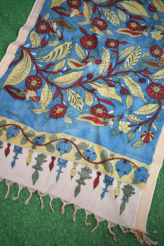 Beautiful Mangalgiri Cotton Pen Kalamkari Dupatta
