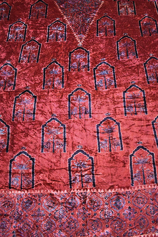 Ajrakh Hand Block Printed Khadi Cotton Stole with Tassels & natural dyes