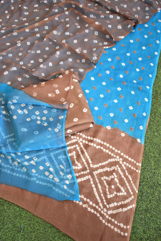 Hand Tie & Dye Bandhani Chinon suit with Chiffon dupatta