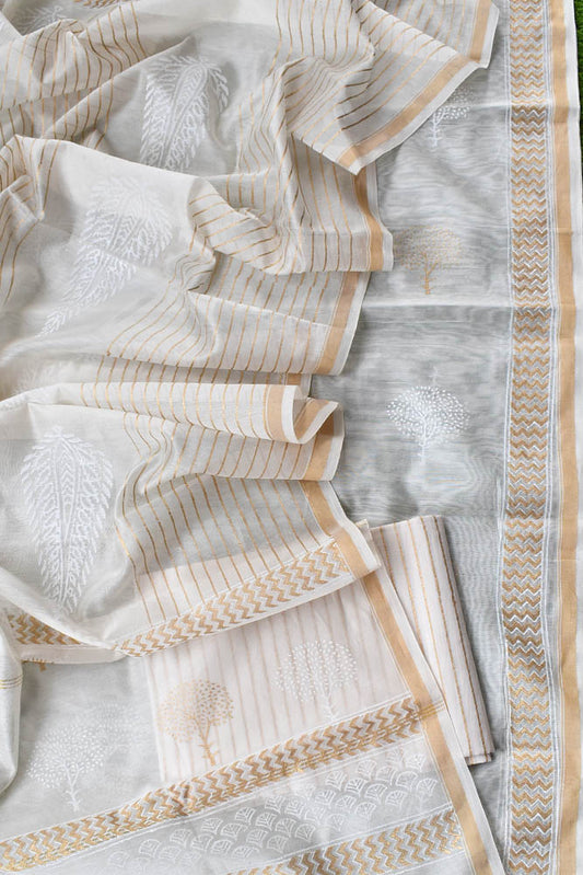 Elegant Khadi (gold) Hand Block Printed Chanderi unstitched suit fabric