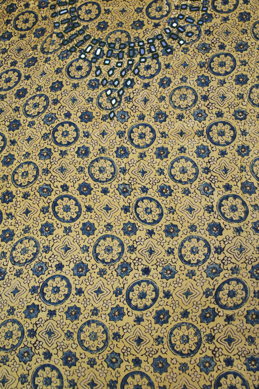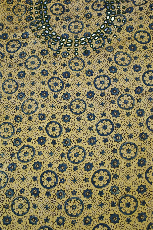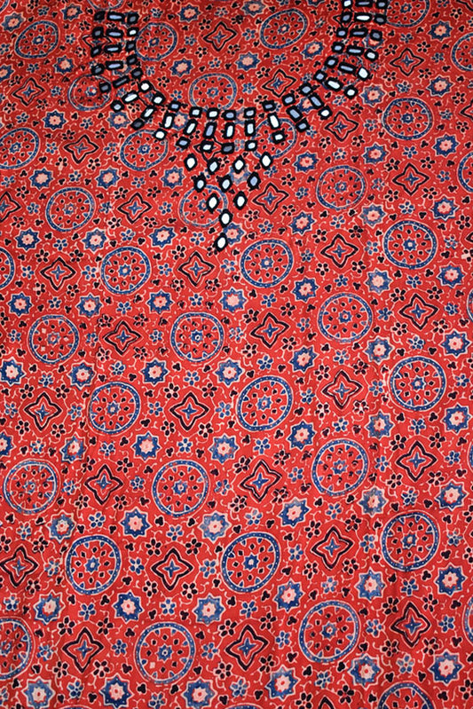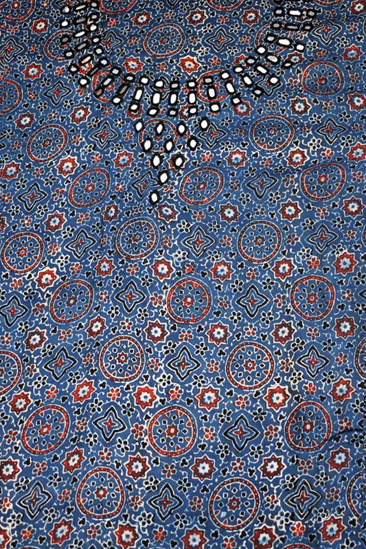 Designer Ajrakh Modal Silk Kurta Fabric with Kutch Mirror Work - 3 mtrs length