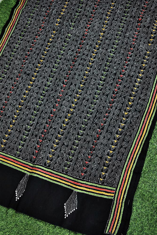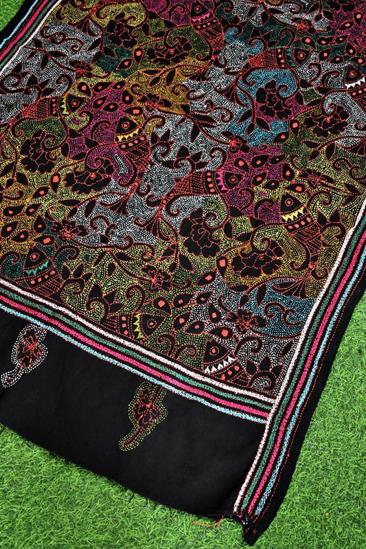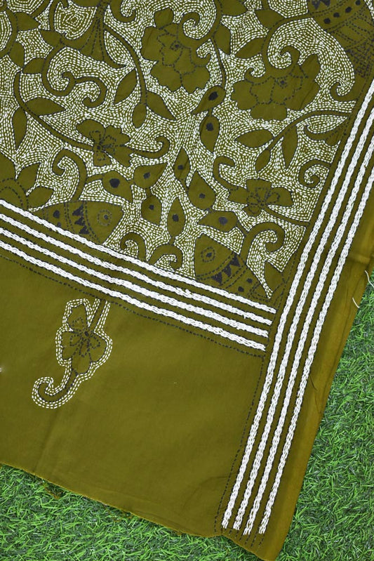 Hand embroidered Cotton Dupatta with Bengal Nakkshi Kantha work
