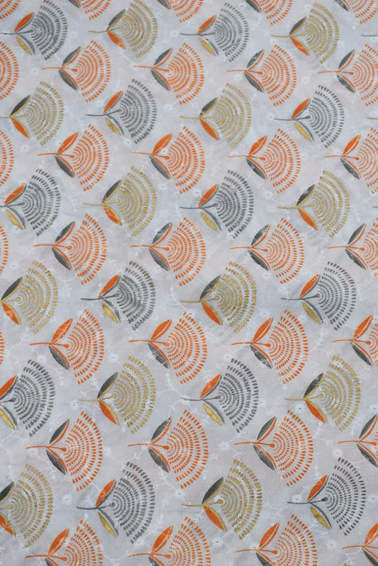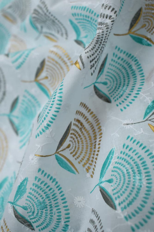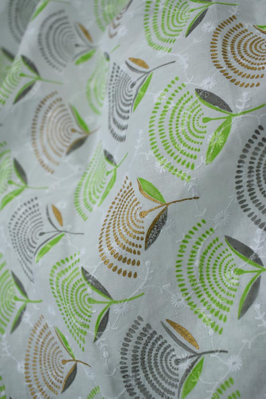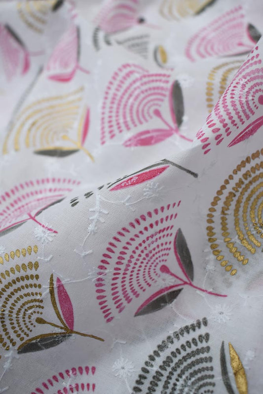 Beautiful white cotton fabric with self embroidery & print (2.5 mtrs cut)