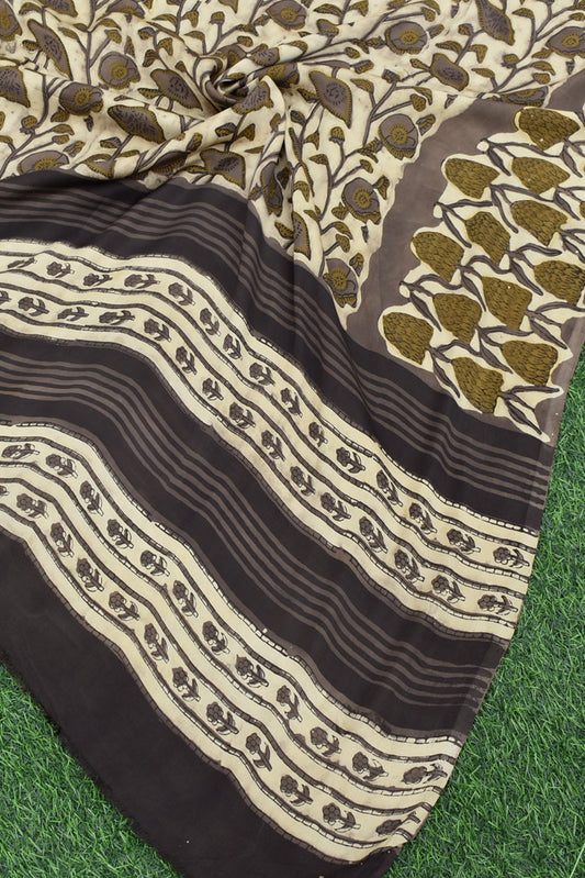 Bagh Hand Block Printed unstitched 3 pc Modal silk suit fabric with Lagdi patta from MP