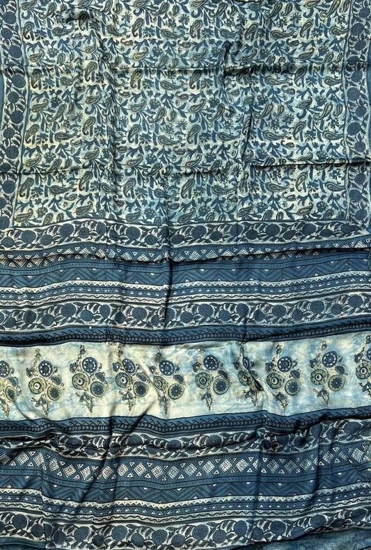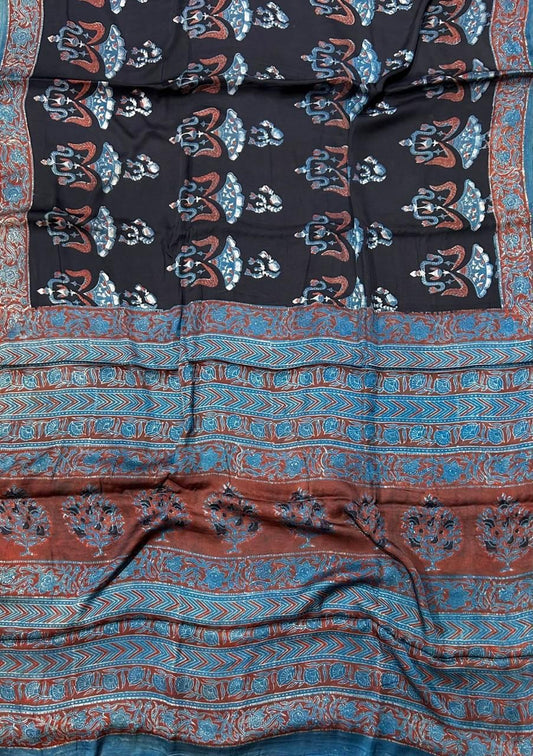 Earthy & Subtle Hand Block Printed Vanaspati Ajrakh Modal Silk Saree with blouse