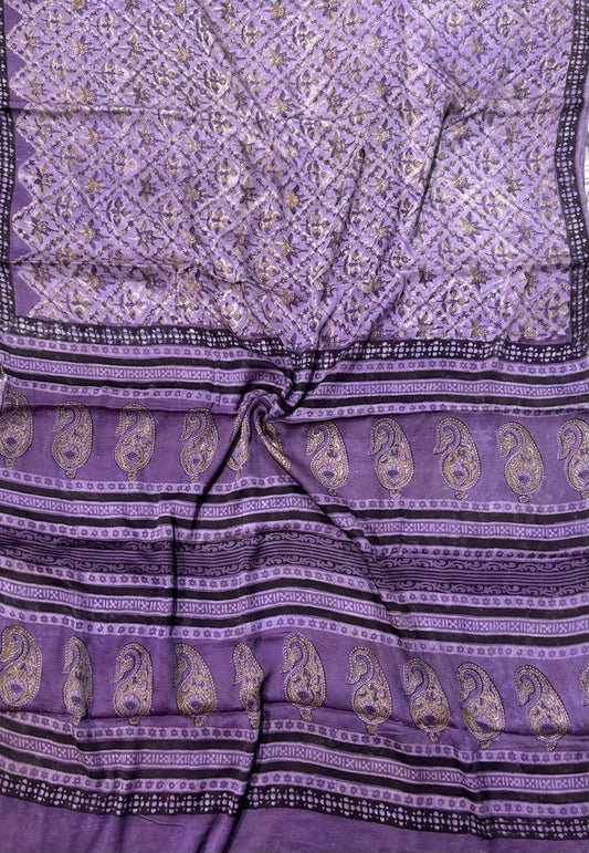 Bagh Hand Block Printed unstitched 3 pc Modal silk suit fabric with Lagdi patta from MP