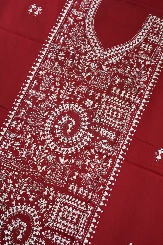 Hand embroidered Cotton Dupatta with Bengal Kantha work
