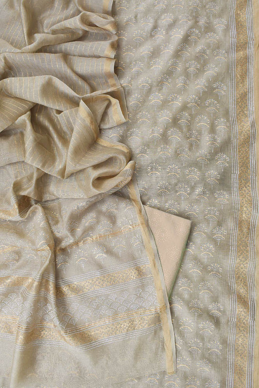 Elegant Khadi (gold) Hand Block Printed Chanderi unstitched suit fabric