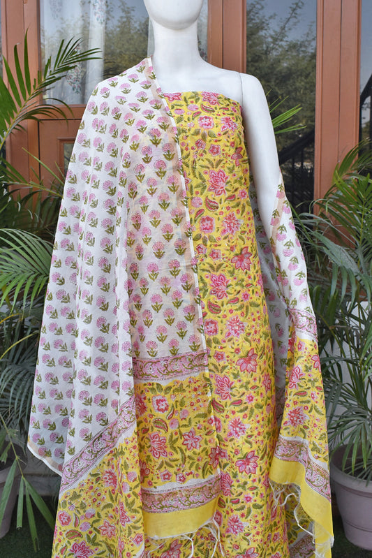 Beautiful Hand Block Printed Chanderi unstitched suit fabric