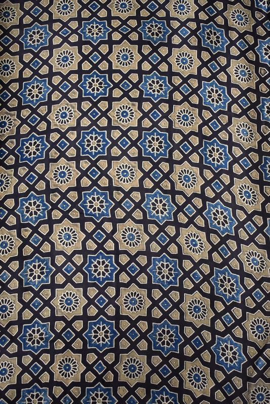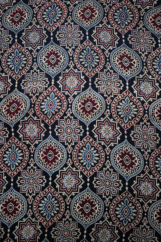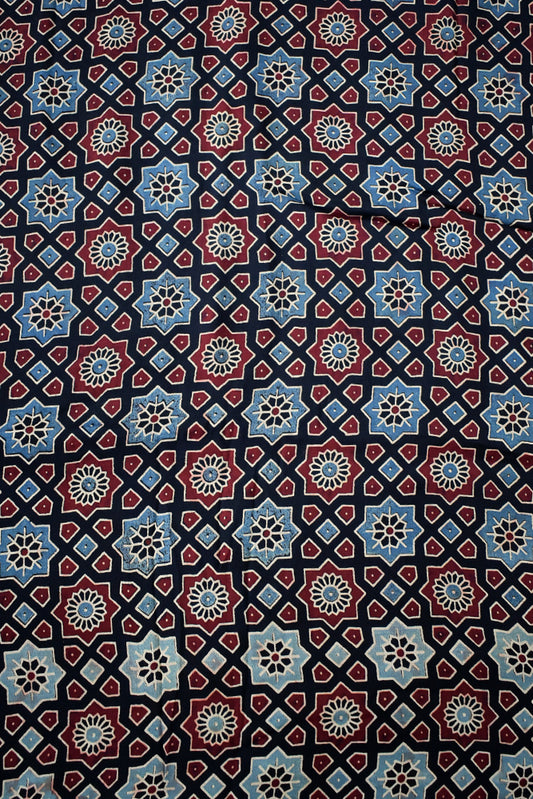 Beautiful Modal Silk Ajrakh Hand Block Print Fabric - 2.5 mtrs cut