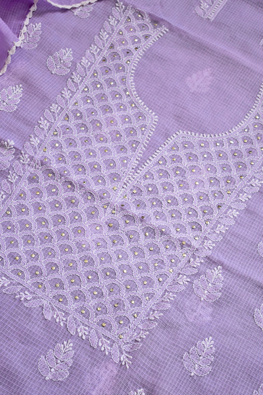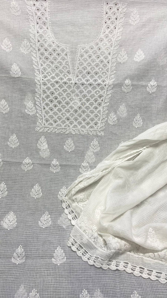 Elegant Kota Doria Kurta & dupatta with Lucknowi Hand Chikankari embroidery and Muqaish work