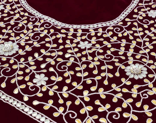 Velvet Fabric with Hand Gota pattiwork , Pearl, Zardozi Embroidery