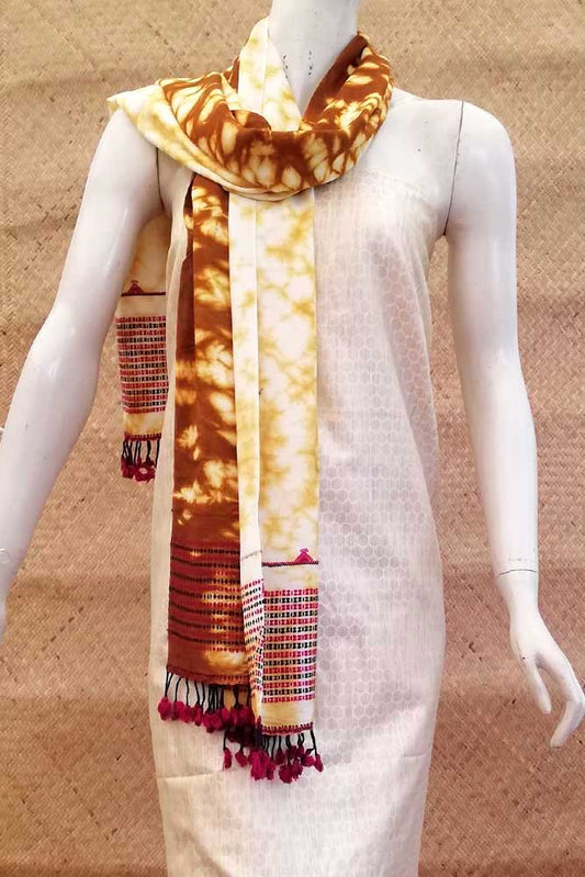Elegant Woven Cotton Bhujodi stole with Shibori dyeing
