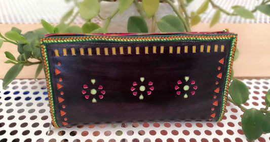 Handcrafted Kutch Punch craft Leather Clutch / Wallet with zipper