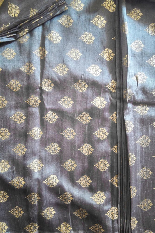 Dupion Silk fabric with Khadi Block print