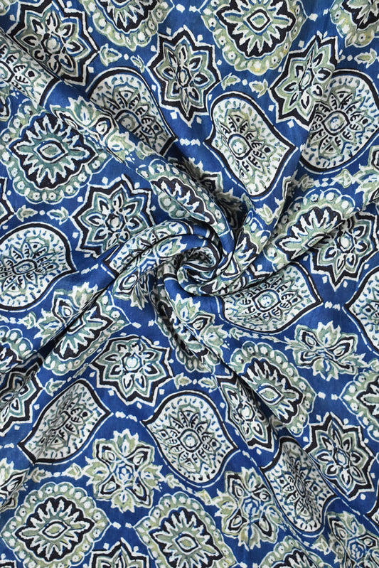Beautiful Ajrakh Dola Silk Hand Block Print Fabric - 3 mtrs cut