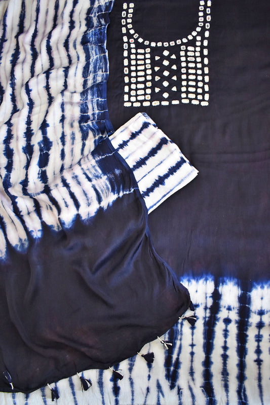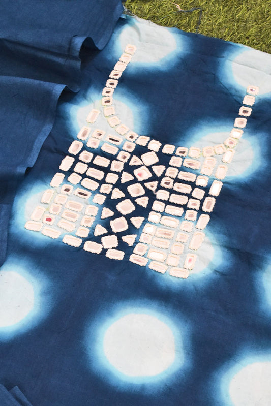 Tie & Dye Clamp Dyed cotton Unstitched Suit with Kutch Mirror work