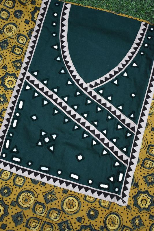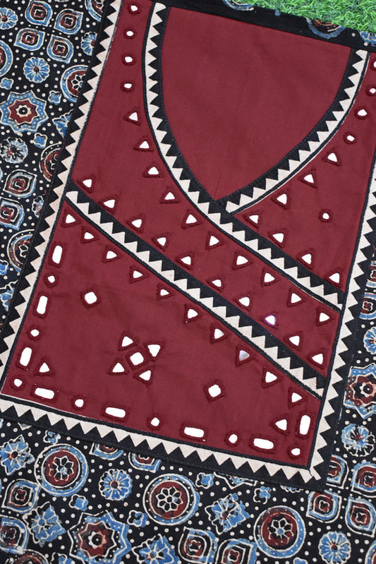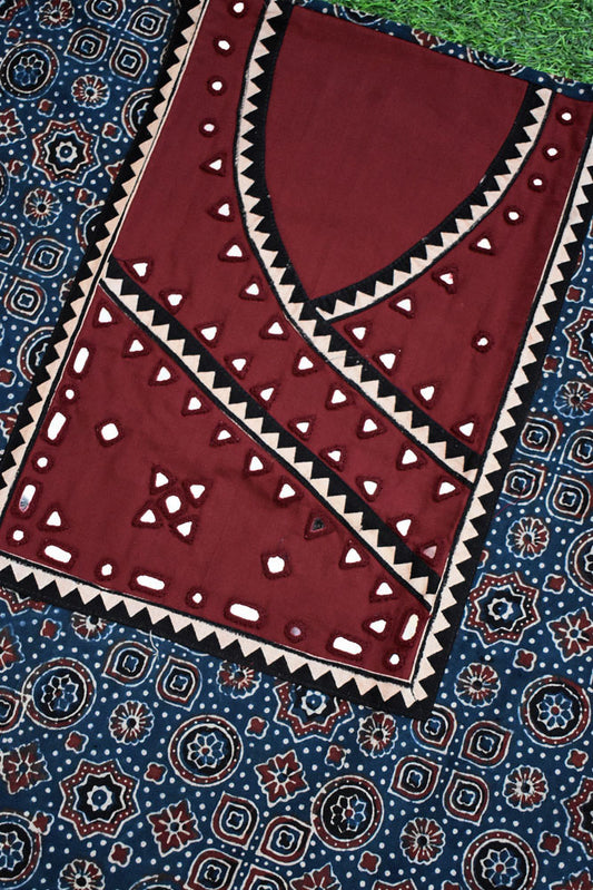 Designer Ajrakh Cotton Kurta Fabric with Kutch Mirror Work patch