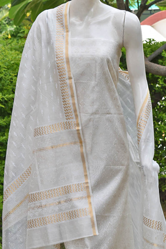 Elegant Khadi (gold) Hand Block Printed Chanderi unstitched suit fabric