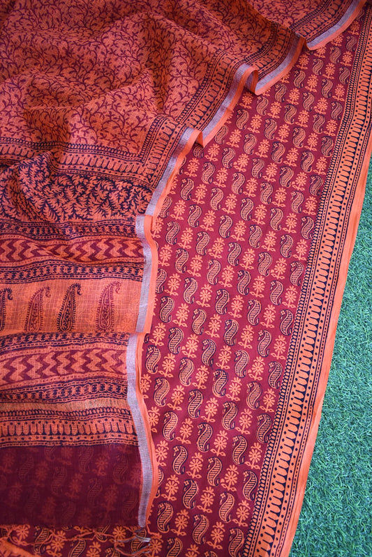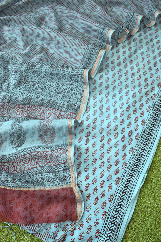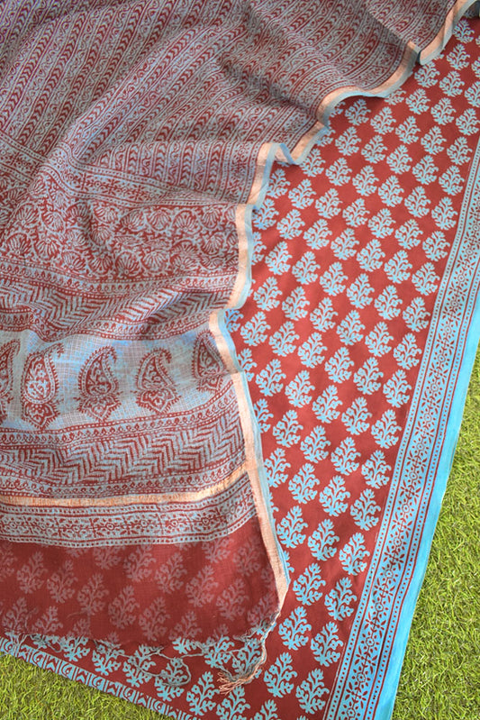 Classic Bagh Block Printed unstitched suit fabric with Kota Doria dupatta