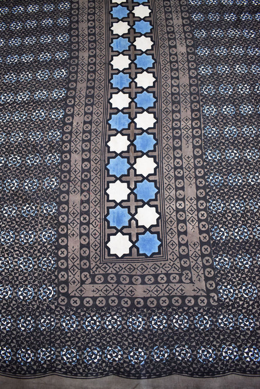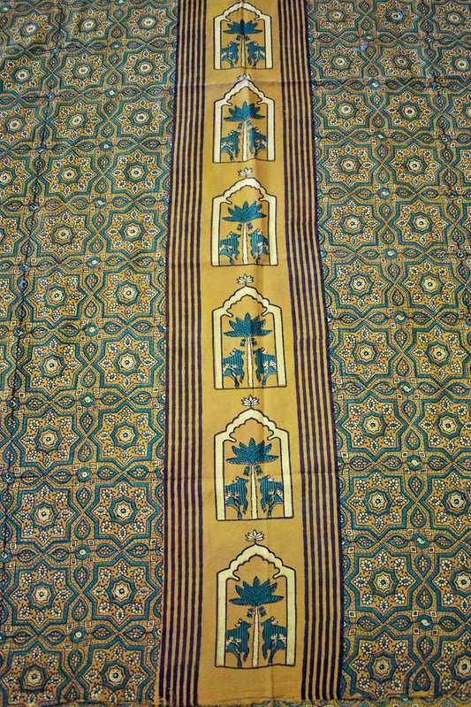Hand Block printed Ajrakh Mashru silk fabric- Length : 2.5 mtrs & 3 mtr option