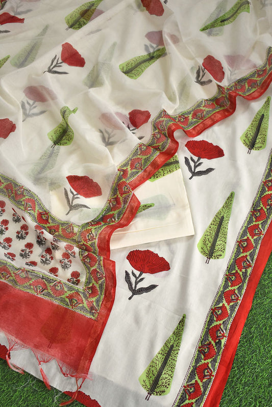Beautiful Hand Block Printed Chanderi unstitched suit fabric