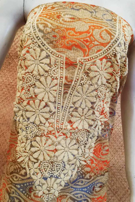 Hand Embroidered Lucknow Chikankari Work Kota Cotton Fabric( kurta fabric only)