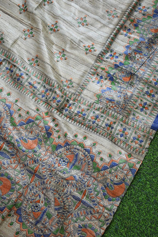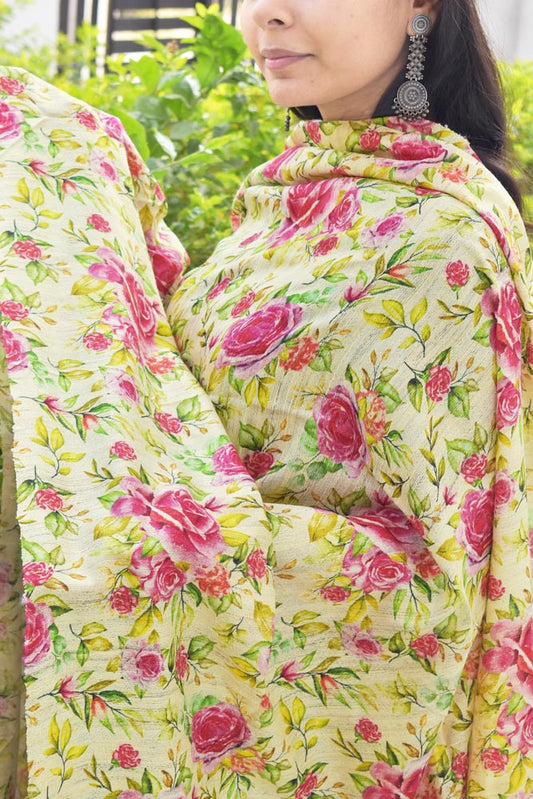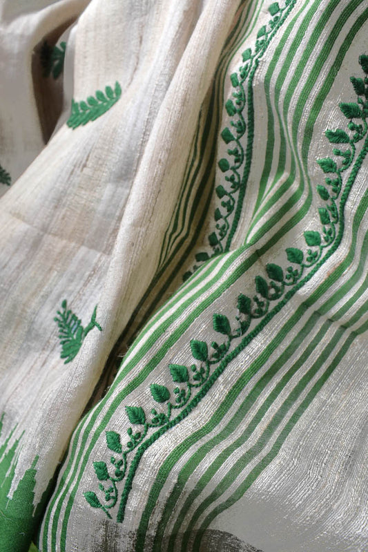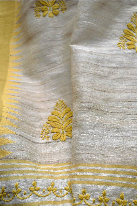 Elegant Geecha Silk dupatta with thread Aari work & Zari border & zari weave on the palla