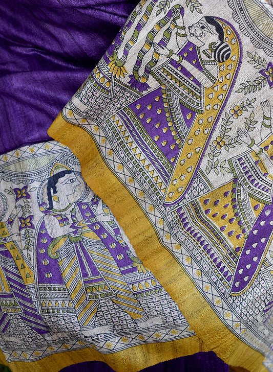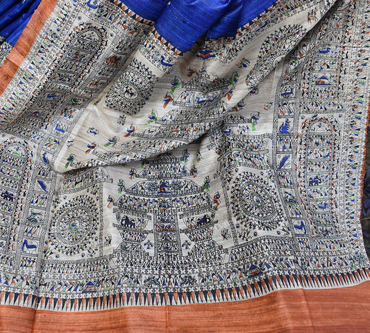 Elegant Geecha Silk Saree with Madhubani Art motifs