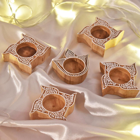 Gift Hamper - Wooden Carved T Light Holders - Diffuser + Set of 4 holders