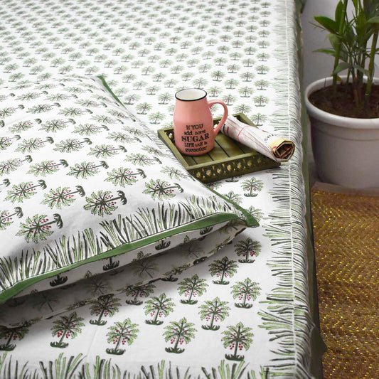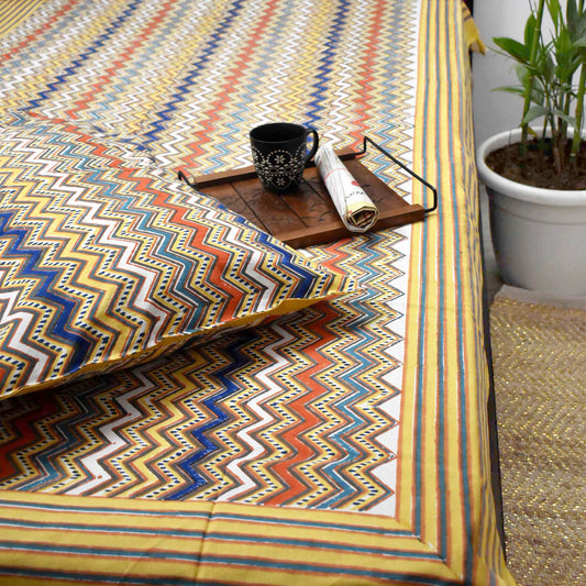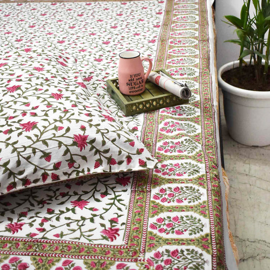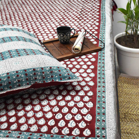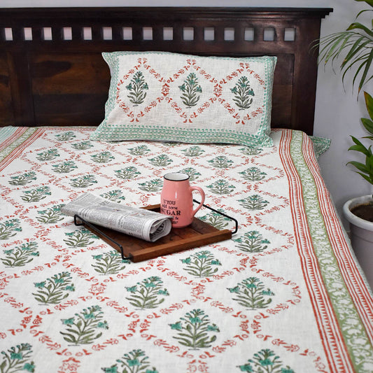 Hand block printed Single Bed sheet with Single ( 1 ) pillow cover