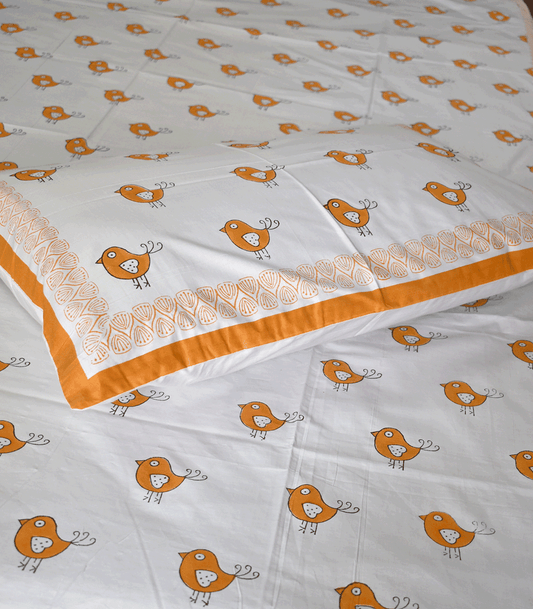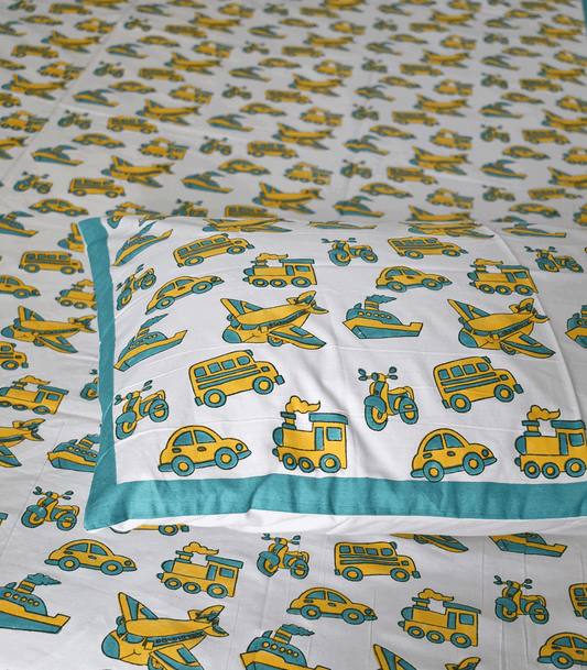 Hand block printed Percale cotton Single Bed sheet with Single ( 1 ) pillow cover for Kids room