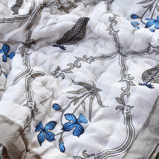 Pair of Reversible Jaipuri Cotton Single Quilt ( 2 single quilt set) with Hand Tagai work