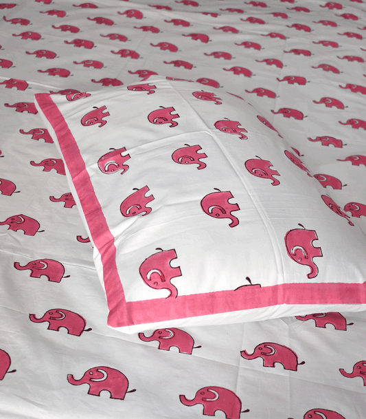 Hand block printed Percale cotton Single Bed sheet with Single ( 1 ) pillow cover for Kids room