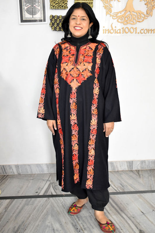 Kashmiri Wool Aari Embroidered Solid Women's Pheran Kurta - NO.1